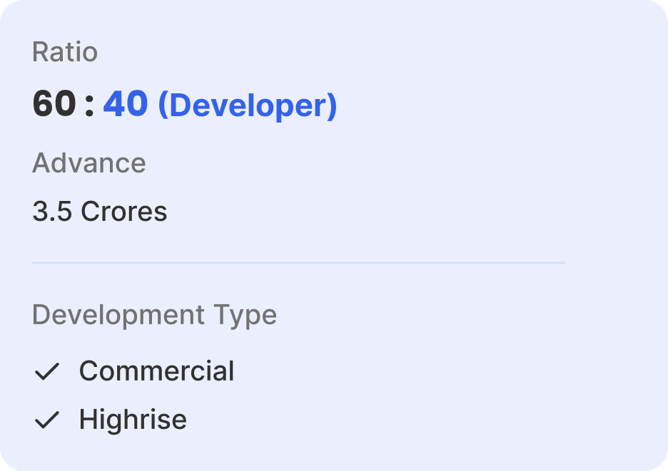 Extent, Price and the Ratios ( in case of a Joint Development Land).